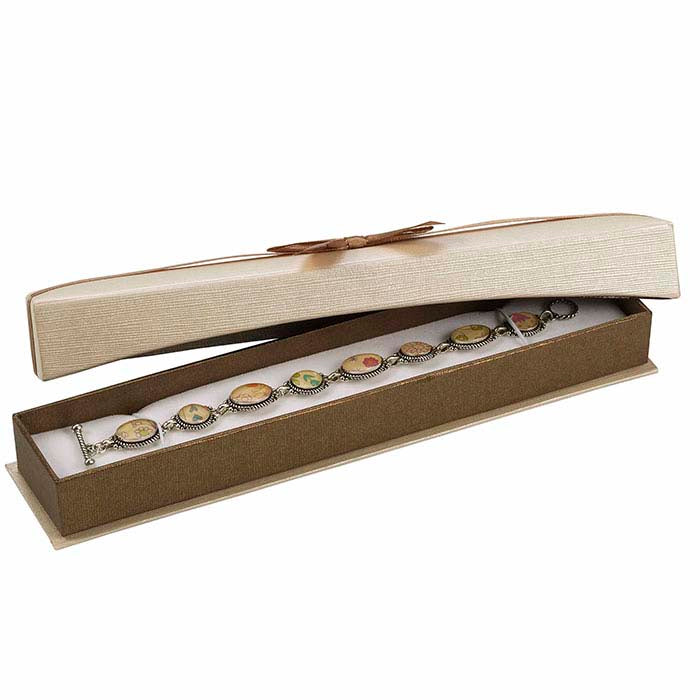 Ribbon-Wrapped Cream and Gold Linen Paper Bracelet Gift Box
