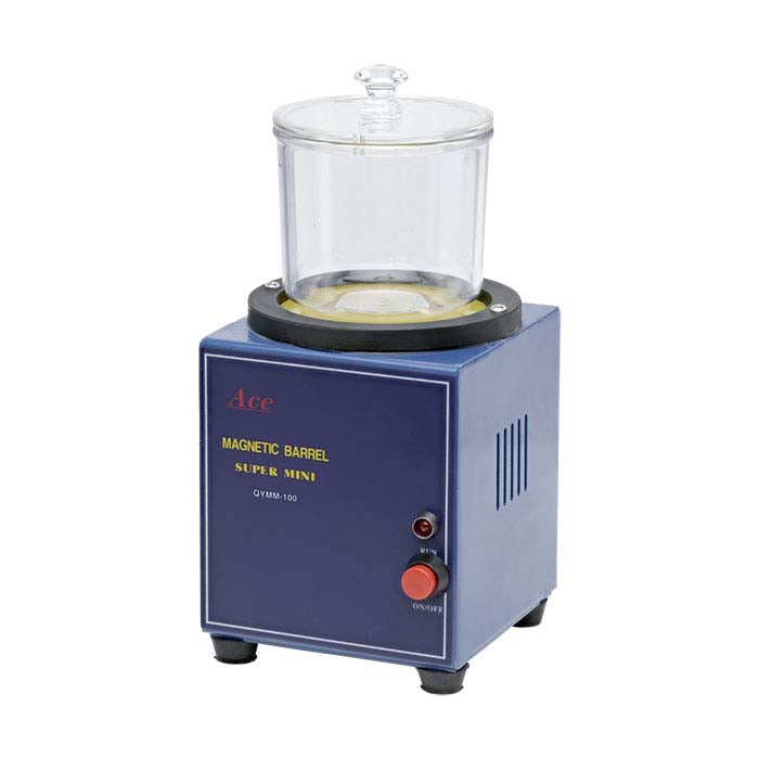 This mini magnetic pin finisher, with its 2-3/4" bowl, is just the machine you need to run one or two smaller, detailed pieces at a fixed speed. Its compact design is economical with your valuable shop space. Keep extra bowls (available separately) on hand to increase your production; have one bowl running while you load and unload workpieces into a second. Pin capacity is 23 grams (0.5mm x 5mm pins are included).