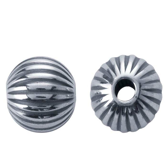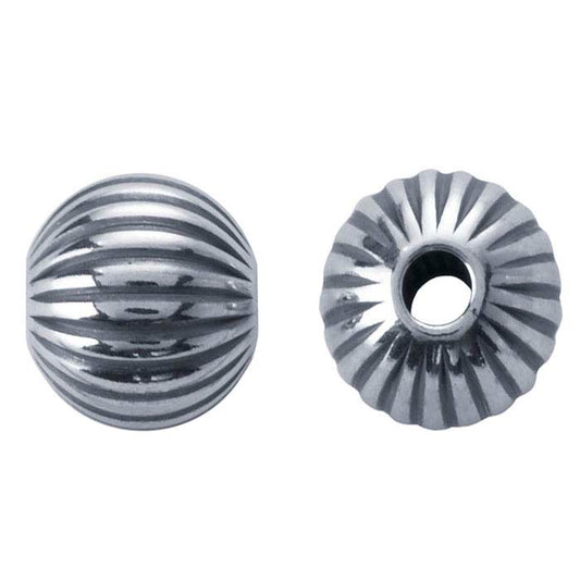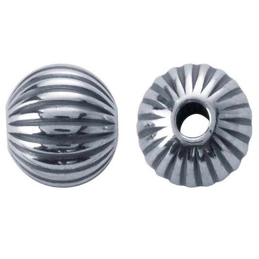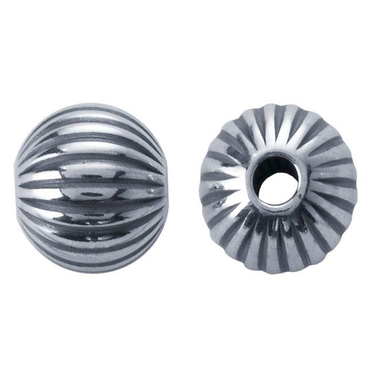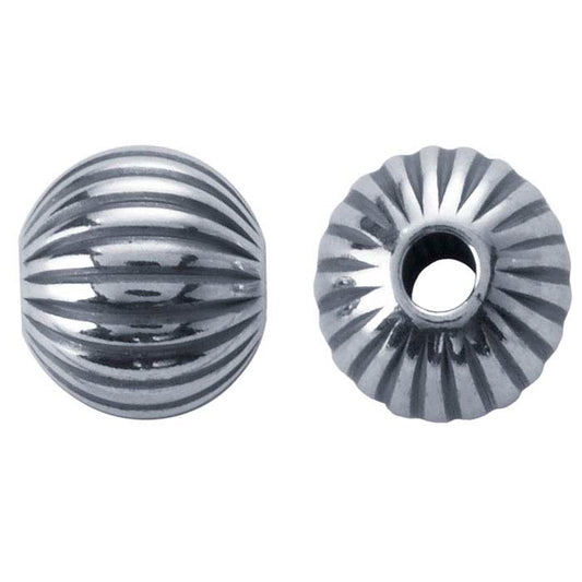 Sterling Silver Oxidized 8mm Round Corrugated Seamless Bead