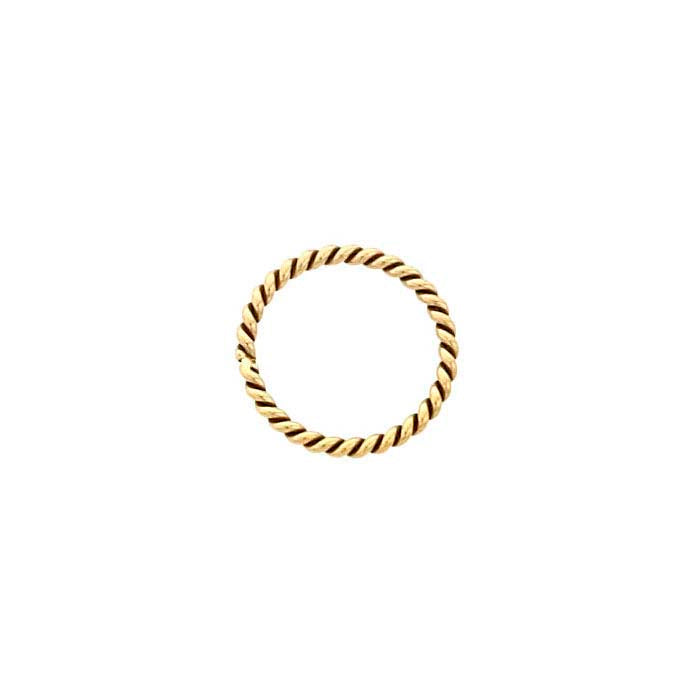 This 14/20 yellow gold-filled round twist-wire closed ring adds texture and depth to any gold-filled design. It is plated with 14-karat yellow gold to ensure a uniform color.Closed rings have no opening and are ideal as attach rings for clasps, as end rings on strung or wire-wrapped pendants, drop or dangle designs, or as connecting rings between fabricated or metal-formed links and components. A closed ring presents a strong, smooth finish with no joint and no need to solder.
