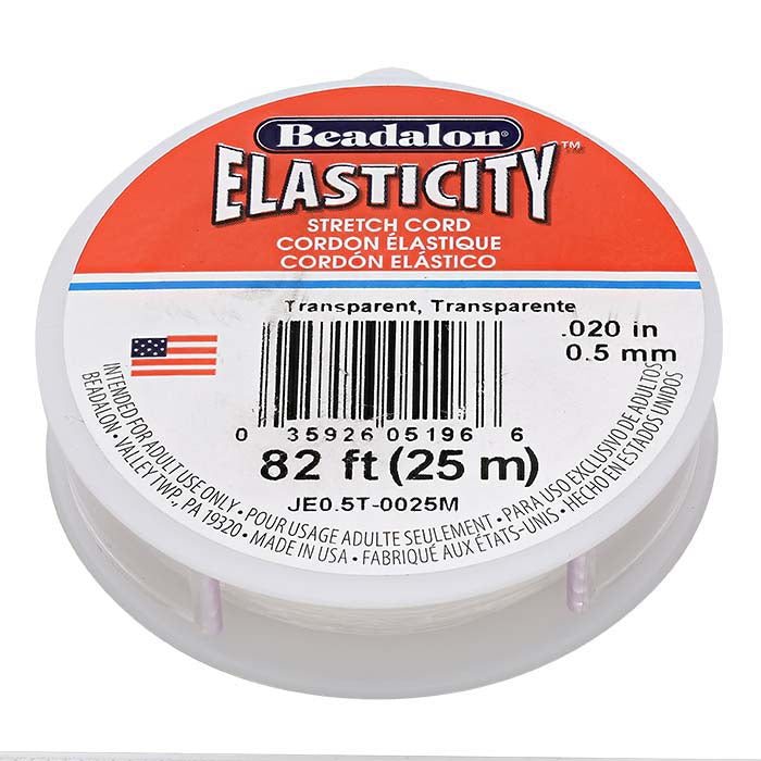 Beadalon® Elasticity™ stretches like a rubber band and is perfect for making bracelets, necklaces and watchbands that will retain their elasticity over time. This cord fits through most stone bead holes; the transparent color is perfect for designs where the cord should be invisible. The smooth, clean finish makes it easy for the wearer to remove pieces without grabbing or snagging hair or clothing fibers.