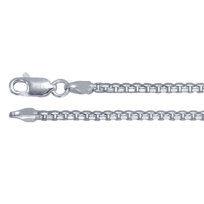 This sterling silver rounded box chain offers a subtle texture and supple feel that’s an ideal choice for custom designs. Offer it as-is, or encourage customers to personalize it with a pendant or an assortment of charms or drops. This chain is plated with fine silver to ensure a bright white color and to help protect against tarnish.