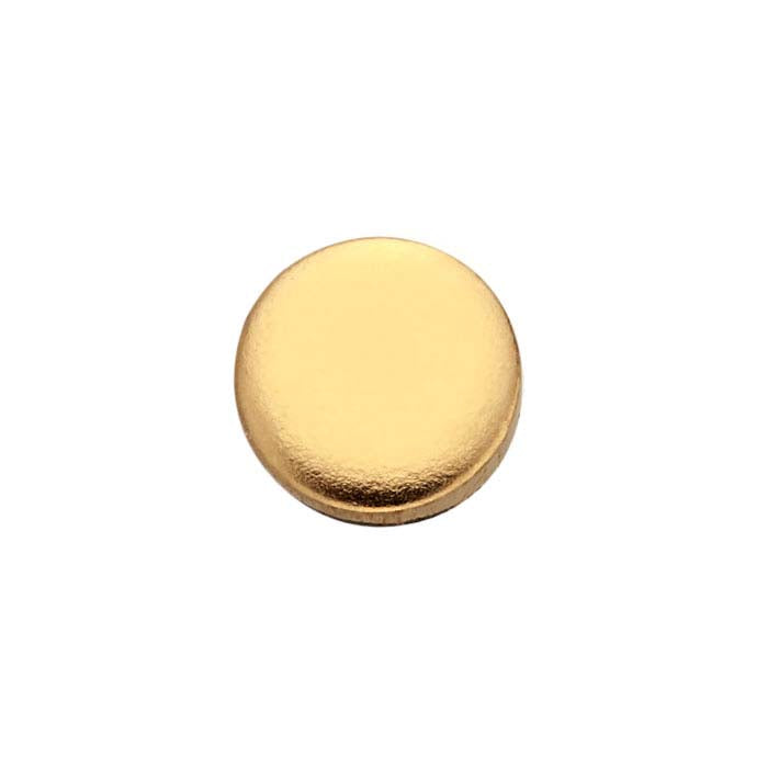 This double-clad 14/20 yellow gold-filled round disc is ideal for shaping into components for your designs. The disc is die struck with clean, crisp edges and will require some finishing to smooth its edges and polish its surface. Use dapping techniques to create concave or convex designs; make round or saucer beads using matching dapped pairs of discs. It is a perfect foundation for other findings, including bezel cups or flat-bottom prong settings, as a backdrop for wire-wrapping designs, and for personalizing with light engraving or design stamps. Or engrave filled metals deeply to create two-tone looks once a stamping has been formed as desired. Gold-filled stampings deliver karat gold at a more affordable cost than solid gold, allowing you to design with the touch of precious metal customers look for and to offer your designs at a price customers appreciate.This tag has a soft temper; it may arrive with a slight dome and is easy to bend, shape and hammer.Gold-filled items are made by heat- and pressure-bonding a layer of 14K (or 12K) gold to a base-metal core. The 14/20 notation refers to the ratio of karat gold to base-metal core by weight; the first figure is the karat value of the gold layer, the second is the total percentage (by weight) of precious metal contained in the item. On double-clad items, the quantity of precious metal is divided between the upper and lower surfaces of the core metal.