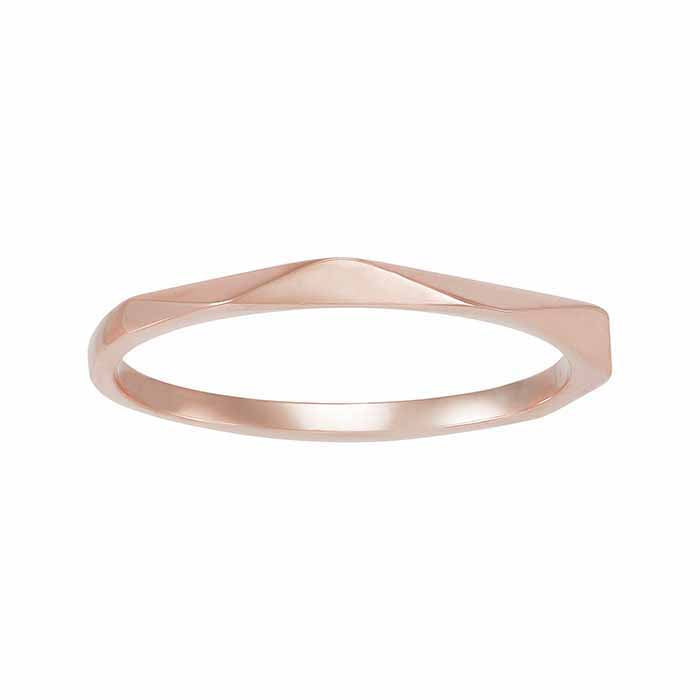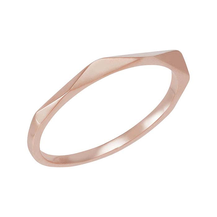 This 14-karat rose gold ring features a wavy geometric pattern. The ring has a bright polish and looks great as a stand-alone accessory or stacked in combination with other rings.