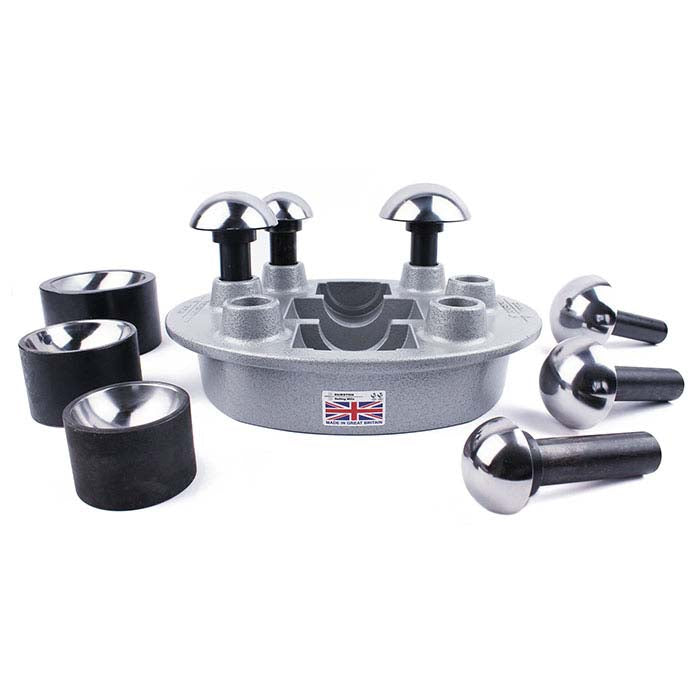 Made with Durston’s award-winning design and engineering expertise, this doming dap and forming set delivers professional-quality results at an affordable price. The punches and dapping bowls are crafted from hardened, precision-ground steel and each is highly polished to reduce marring. Each punch has a 1" shank. This set includes six punches and three two-sided dapping bowls.
