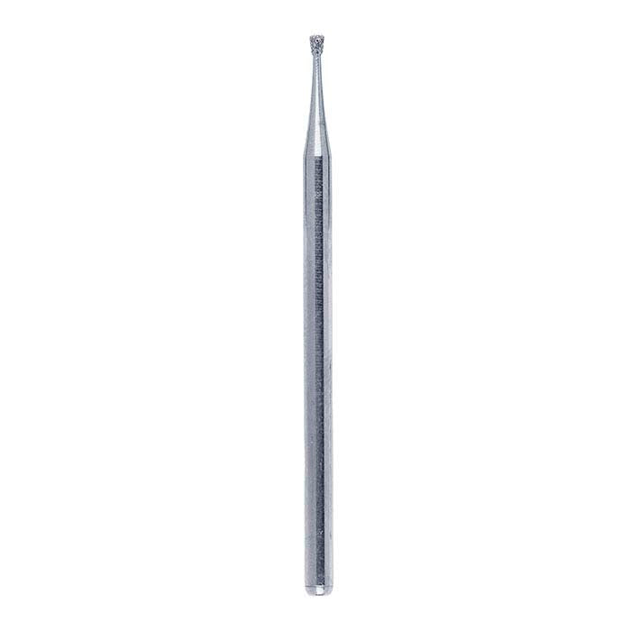 This Edenta bur features a surface plated with diamond particles; rather than metal cutting the surfaces, the diamond surface cleanly grinds away material. With a mid-range 120-grit abrasive, it effectively removes material while leaving a smooth surface and is ideal for shaping stone, metal, ceramic and glass. Inverted cone burs are used for cutting a shoulder into bezels and undercutting for inlay or channel settings. Always use a lubricant, such as BurLife, when using diamond burs.