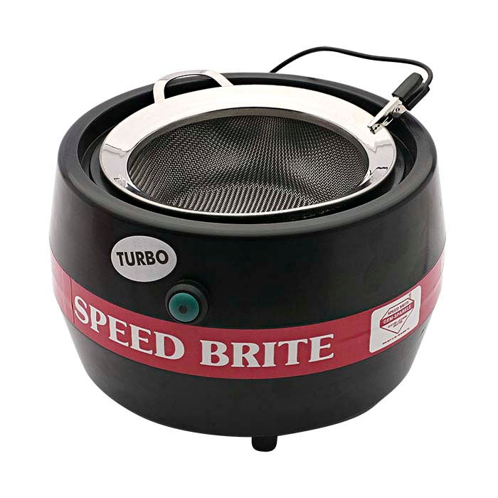 Easily and quickly remove tarnish, dirt and grime with this SpeedBrite 200SB turbo ionic cleaner. The ionic cleaning action delivers professional results using polishing agents and gentle soap cleansers that are safe for soft, porous stones such as opals and pearls. Ionic cleaning uses no abrasives, cavitation or heat. The electric current generated works with electrolytes in the Gem Sparkle™ ionic cleaning solution (included) to create a bubbles that lifts away dirt, tarnish and oxidation from gold and silver without removing any metal. Its compact design is ideal for showroom, travel and trade shows—and it makes a great offering as an add-on sale item for your customers. Made in the USA.