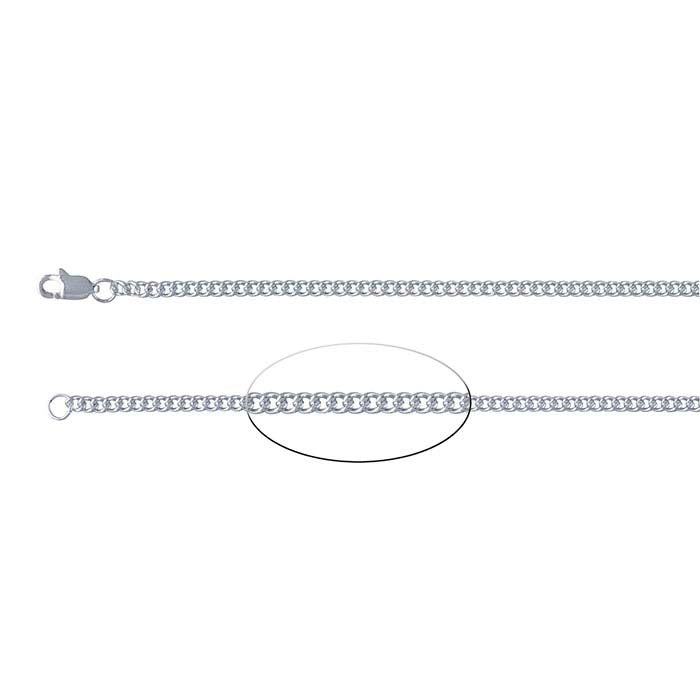 A curb chain starts as a cable design, then has its links twisted so they lie flat; the twist gives the links a slightly interlocked look that adds dimension to the chain profile.