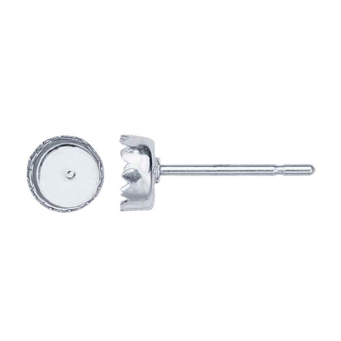 This sterling silver earring post features a 4mm round bezel mounting with a decorative, serrated edge. Set with one cabochon using traditional bezel setting techniques. For additional security, add jeweler's epoxy to the bottom of the cup before placing your stone. The friction post features a single groove to help secure the ear nut (not included).