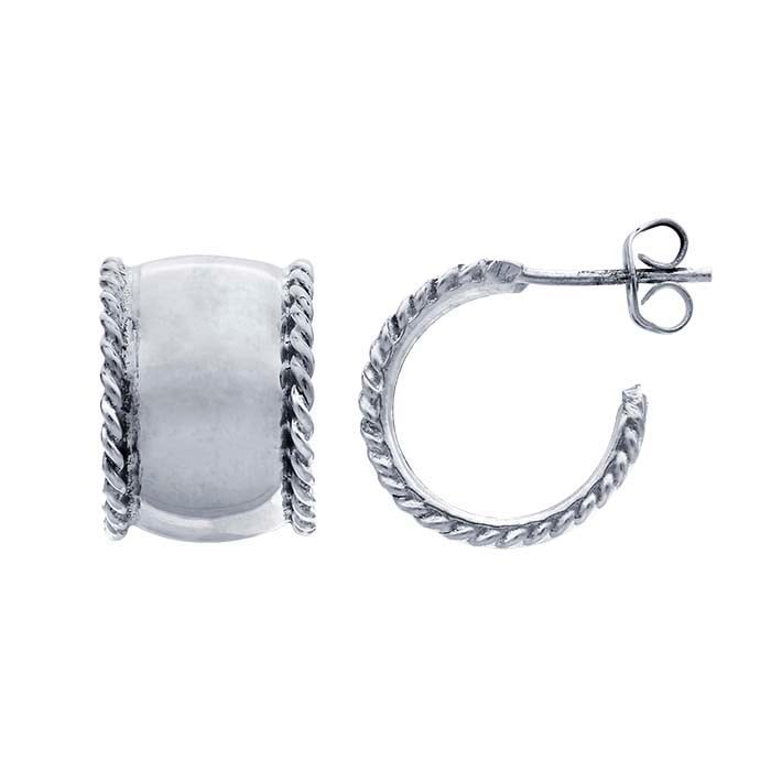 These finished sterling silver hoop earrings feature a wide, slightly convex form finished with rope-edging that provides an eye-catching depth and texture. Ear nuts are included. Hoop earrings circle the ear from front to back—a classic that never goes out of style.