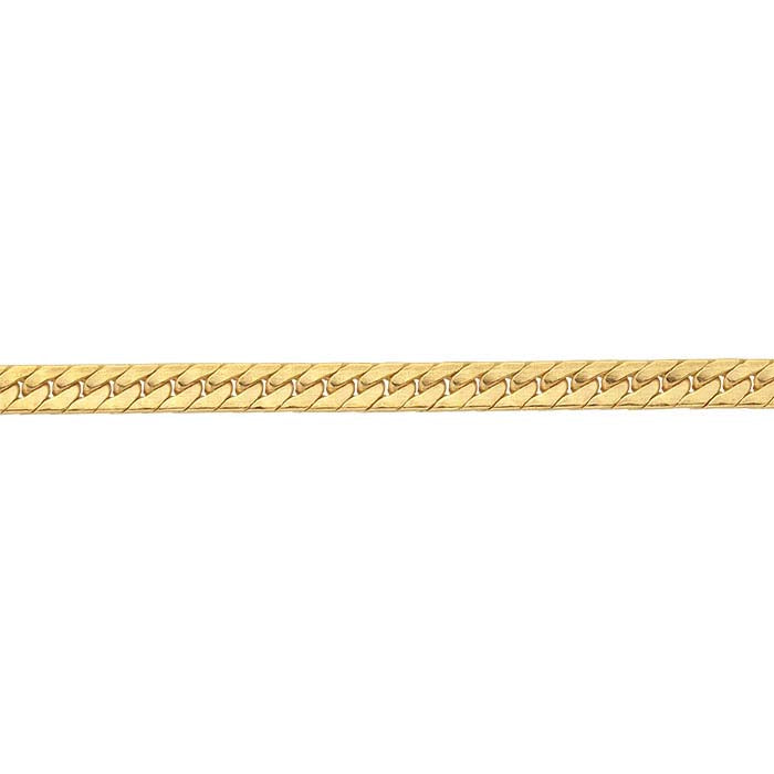This 14/20 yellow gold-filled chain offers a classic look; the wide, flat profile of the chain lays flat across the neckline. It is ideal as a stand-alone statement piece; it is not recommended for pendants. This gold-filled chain is plated with 14-karat yellow gold to ensure a uniform color.Herringbone chain is constructed of multiple rows of V-shaped links, arranged so that the direction of each row is opposite the row next to it. The links lie flat giving the chain a low-profile, highly fluid look. Store this chain flat to help prevent kinking.