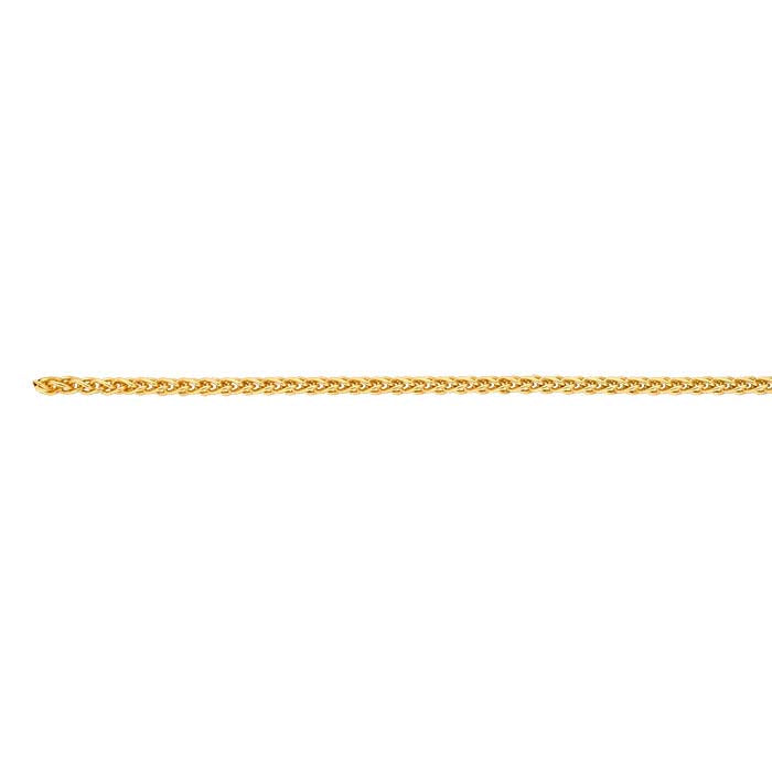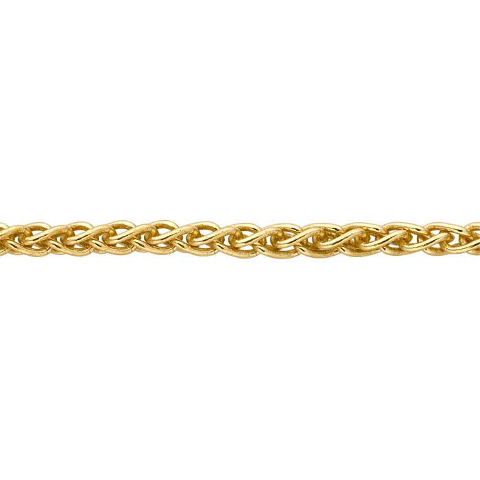 This14/20 yellow gold-filled round wheat chain offers your customers a classic look and adds texture to your designs. It can be worn alone and makes a great foundation for pendants, drops or charms. The chain is plated with 18-karat yellow gold.A variation of the rope chain, wheat chain is made with alternating figure-eight links that are closely interconnected to present a braided look and an almost square profile.This chain is sold by the foot, allowing you to have exactly the length you need when you need it.