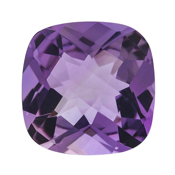 This AA-grade checkerboard cushion amethyst features a lively, medium-blue color saturation that complements a variety of metal colors and gemstones. Its eye-catching cut and purple color make it a great choice for simple designs that highlight these qualities. Use it by itself for simple earring or ring designs or highlight the color by pairing it with contrasting-color gemstones to create more complex, multicolor designs. Amethyst is the birthstone for February.
