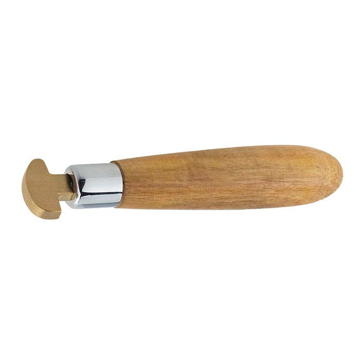 A new twist on an old favorite! Use this brass bezel roller to close bezels quickly and easily—the soft brass head won't slip as much as steel and is less likely to mar the metal you're working with. The head is off-center and shaped to provide a wider range of positioning and pushing options when setting your stones.
