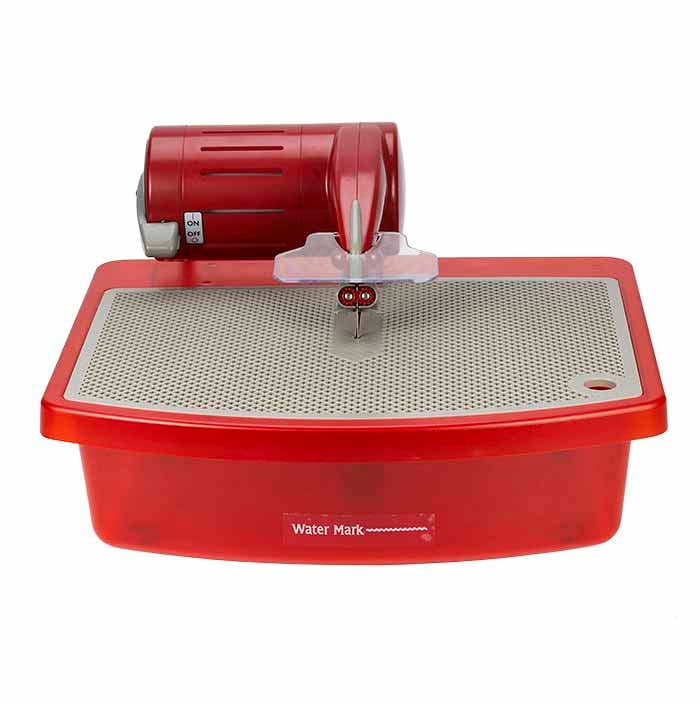 • The roomy work surface (17-3/4"W x 16"D) is pierced in a grid pattern to allow coolant water to return to the reservoir and to accept accessories for perfect straight, circle and angled cuts. Accessories (available by special order) have pegs that fit into the grid wherever you need them and are a snap to insert, remove and re-position.