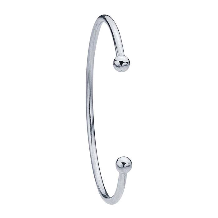 This simple stainless steel cuff bracelet offers a classic look and is ideal for customizing. The easy-on/easy-off threaded end caps allow customers to change the design again and again by adding or removing large-hole beads and charms quickly and easily; accommodates beads with 3mm holes.