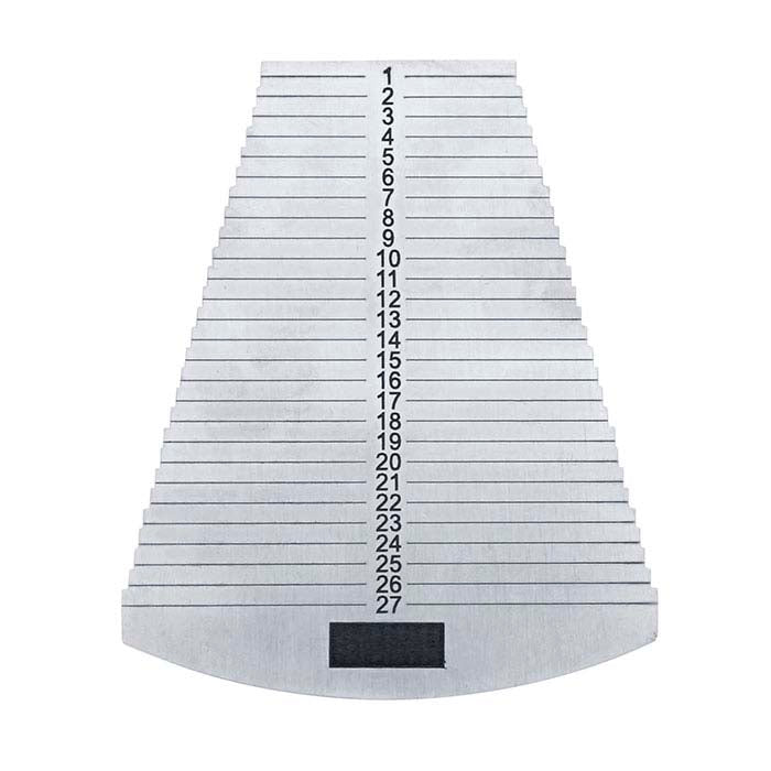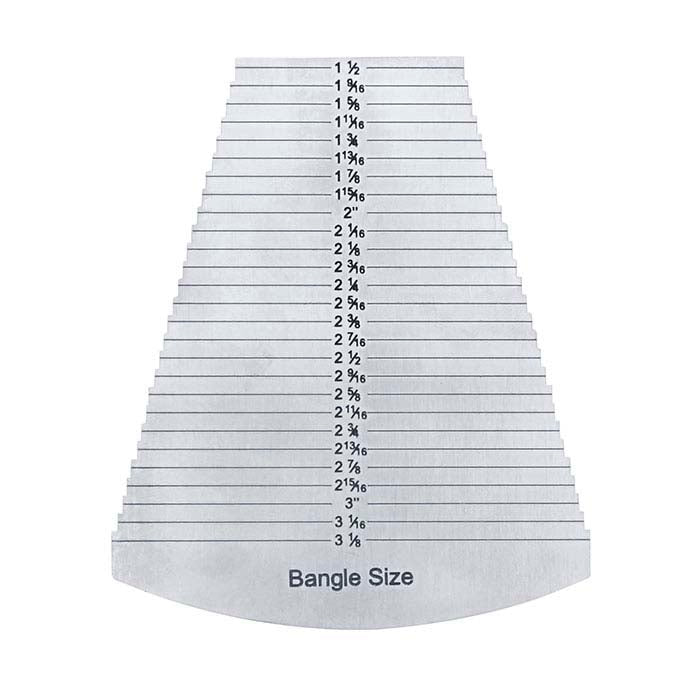 This steel bangle bracelet gauge is clearly marked and allows you to easily measure bracelet diameters. The graduated gauge offers measurements in 1/16" increments from 1-1/2" to 3-3/8", providing you with a wide variety of bangle bracelet sizes from which to choose. It features a flat design that makes it ideal to take with you in your travel case or to conveniently store in your bench without taking up much space.