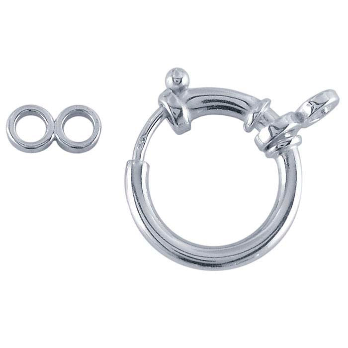This oversized sterling silver spring ring clasp features attach rings to help you complete your design and is ideal for heavier strands and to highlight the clasp as a design element. The spring ring is a classic clasp choice, ideal for all but the heaviest of designs. The hollow tube of the clasp contains a spring that holds the clasp closed—rock the nib back to retract the inner tube, allowing you to thread the opposite end of the strand onto the clasp. Simply release the nib to secure the clasp.