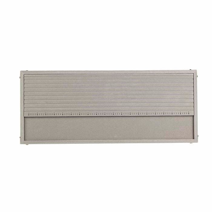Protect your delicate stones, pearls and beads on this cushioned wood board covered with soft, velvety material, while you lay out and string your bead strand designs. The board has eight 3/4"-deep slits that accommodates strands up to 20" long and a spacious tray that holds your beads as you work. A roomy recessed compartment provides a staging area for beads and findings, keeping them conveniently at hand as you work. The edge of the slotted compartment is marked in 1/4" increments to help you accurately measure the strand length in process. The matte color of the material is easy on the eyes and enhances visibility as you work.