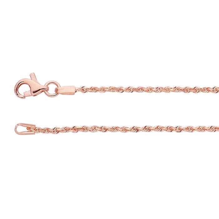 Diamond cuts on this 14-karat rose gold French rope chain give it added depth and shine, making it an elegant complement to pendants, drops and dangles.French rope chain features a double row of twisted links that are interconnected, producing a substantial chain with an obvious spiral, as if two rope chains were entwined. Diamond-cut versions have facets precision-cut into the links with diamond-tipped tools. The facets are then polished to enhance the light-reflecting properties of the link surfaces.