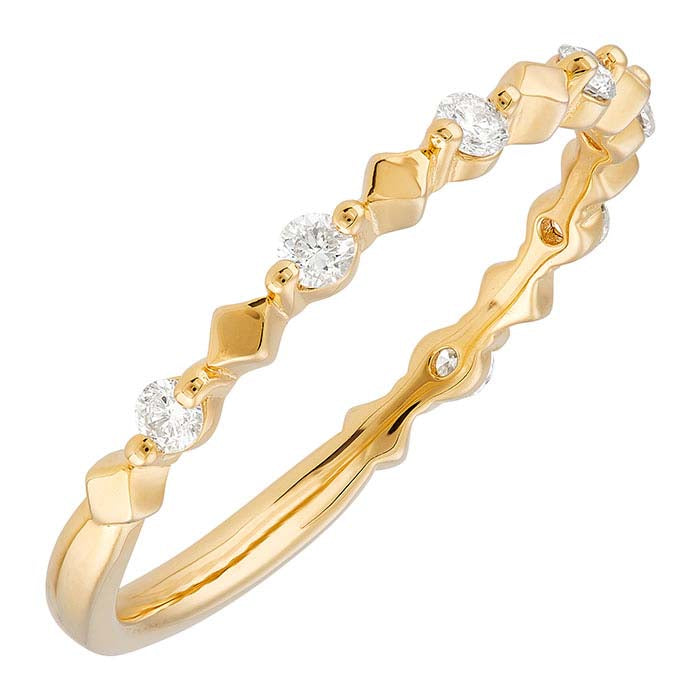 14K Yellow Gold Plated Sterling Silver Diamond-Set Stacking Ring