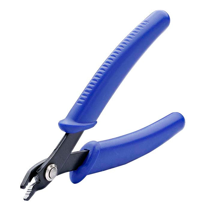 These bead-crimping pliers provide expert and efficient crimping, creating secure, smoothly rounded crimps for a smooth, professional look. Crimping pliers are ideal for neatly and smoothly closing crimp tubes and beads without creating the sharp, unattractive edges that regular pliers can leave. Use these pliers for 2–3mm beads; the final crimps are suitable as floating spacers on Beadalon® or Illusion Cord and can be hidden in a barrel clasp or clamp-style bead tip. To use, first position the crimp tube or bead in the jaws and crease it into an oval, then shape and finish. These pliers are made of hardened tool steel, a very hard, strong material; the jaws will not be nicked or deformed with normal use.