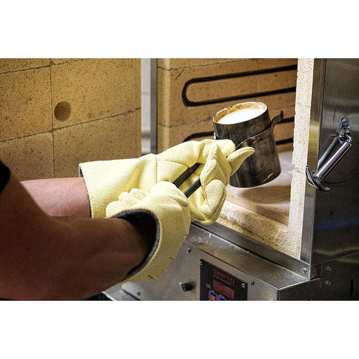 Use these gloves when working around hot objects. Safe for use up to 800°F (427°C), and brief momentary contact with items up to 1,000°F (538°C). Made of Kevlar® thermal material, these gloves contain no asbestos. Each package contains one pair of gloves.