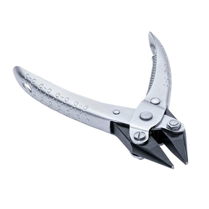 The parallel action on these chain-nose pliers make them perfect for stone-setting, forming, shaping, bending and other common bench task where even, firm pressure is a priority. As a result, the jaws hold objects securely, even under very firm pressure, with no slippage. Choose parallel-action pliers when you need to hold a workpiece or other object securely while at the same time applying firm pressure to it, or when manipulating wire (you can feed the wire down through the throat and hold it firmly over the entire length of the jaw). On chain-nose pliers, both jaws are semi-round with flat interior surfaces, tapering from the pivot to the tip. Use to open and close jump rings, for flat crimping and to make angled bends.