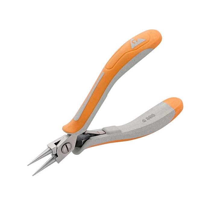 Cut with a laser, the jaws on these Italtec round-nose pliers feature precision edges and contours that deliver smooth, repeatable bends and curves in metal and wire. On round-nose pliers, both jaws are round, tapering from the pivot to the tip; they are ideal for creating jump rings, clasps, coils and curved bends. The jaws are made of C70 steel that is hardened to 62 HRC.