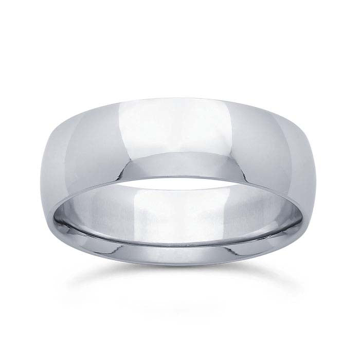 This bright platinum wedding band features a rounded profile and has a rounded Comfort Fit interior surface that helps ensure exceptional comfort and wearability.Precision-machined from FusionForged® extruded tubing by John C. Nordt, this ring offers a consistently fine-grained microstructure. Manufactured with simultaneous application of heat, pressure and force, the ring is virtually free of porosity so that it is incredibly strong and takes a brilliant finish. This ring generally can be safely sized up or down two whole ring sizes.