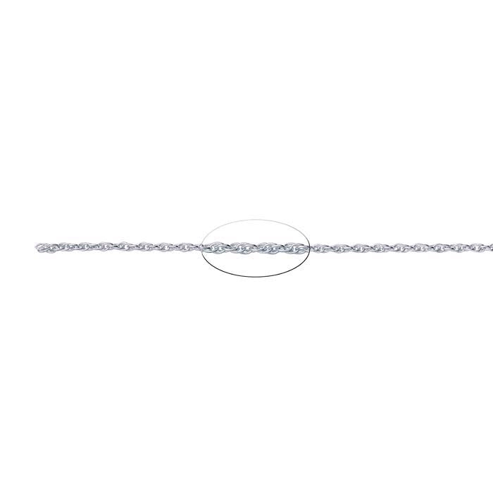 This classic sterling silver rope chain is ideal for pairing with small pendants or drops of any style. This chain is plated with fine silver to ensure a bright white color and to help protect against tarnish.Rope chain features twisted links that are each connected to two other links in a continuous row. The twist causes the chain to create a spiraled effect similar to the woven fibers of a rope.This chain is sold by the foot, so you can get as much or as little as you need for your designs.