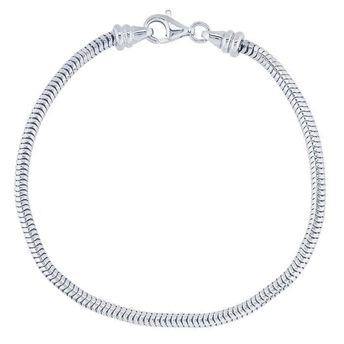 Sterling Silver 3mm Unseamed Snake Chain Bracelet with Threaded End Cap