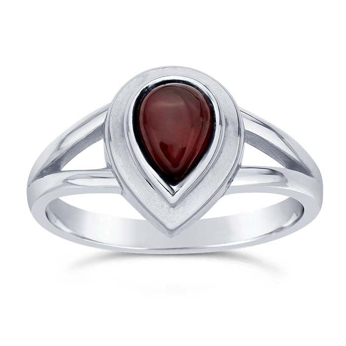 This sterling silver ring mounting features a split-shank design and a bezel setting that accommodates one 7 x 5mm pear-shaped cabochon. Use jeweler's epoxy to secure your stone into the bezel.