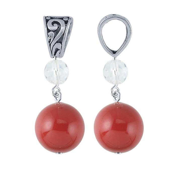 This sterling silver bail features a tapered design with a scrolled filigree design on an oxidized background that highlights its detail. A small hole (.050") at the base of the bail that allows you to easily add pendants, drops or dangles. Use a head pin to attach a bead or charm to the bail, or if you prefer a fixed bail, solder the bail on to a pendant as is.