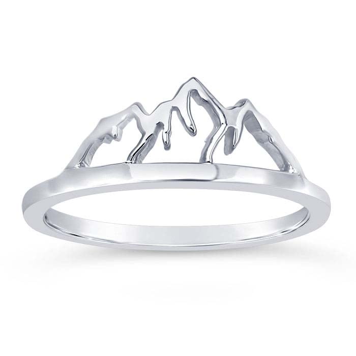 This finished sterling silver ring features a brightly finished open silhouette of a craggy mountain range. This ring would look great on its own or topping a stack.