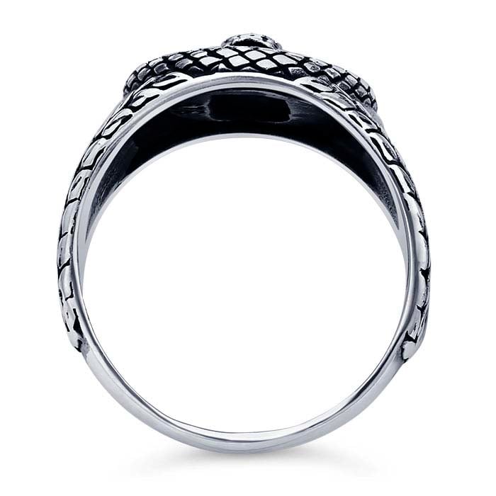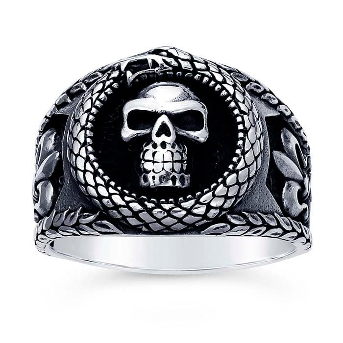 Sterling Silver Skull & Snake Ring with Fleur-de-Lis