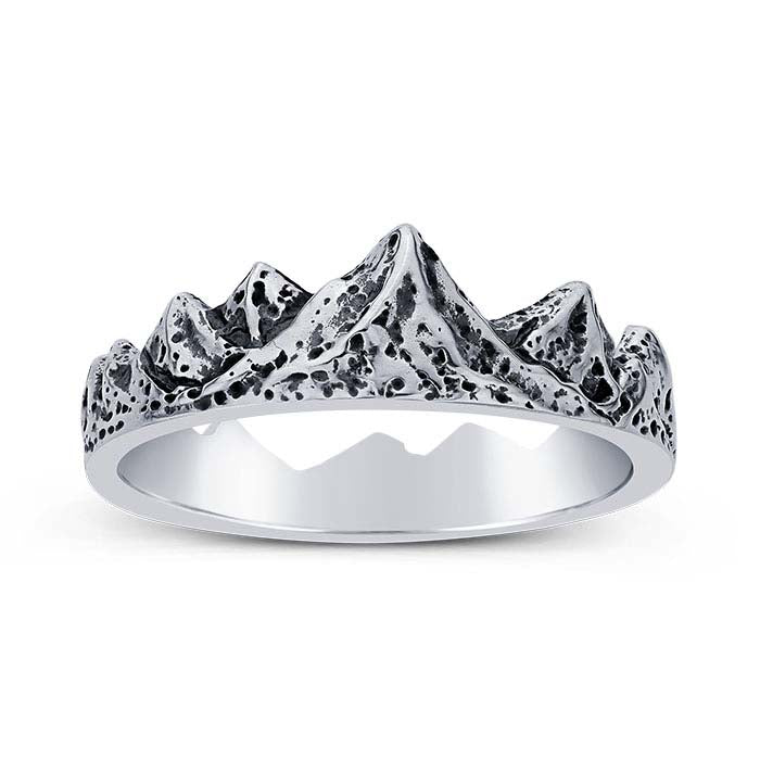 This sterling silver ring features a mountain ridge, oxidation highlights the details. This ring is attractive as a stand-alone accessory or stacked in combination with other rings. Offer customers a variety of stackable ring styles to mix and match, and encourage them to create their own changeable designs.