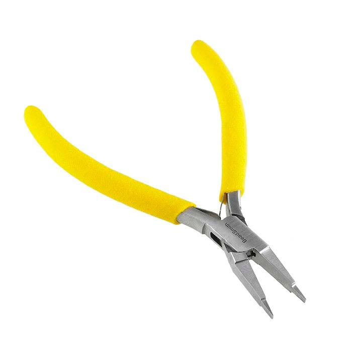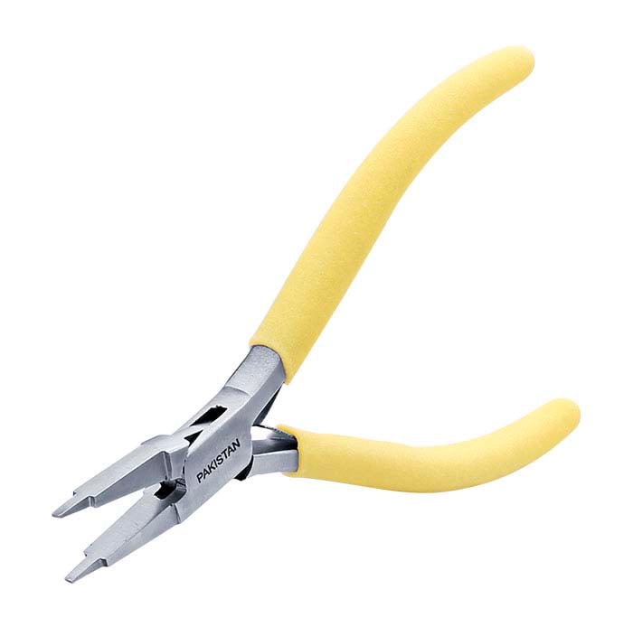 These tapered flat-nose pliers have a stepped, sharply tapered 2mm tip that make them great for chainmail work; the tapered, narrow-ended tips allow you to get in closer to jump rings and secure a tighter grip on the ring edges as you work different weaves. On flat-nose pliers, both jaws are flat, with a smooth interior surface that helps protect the surface of metal or wire against marring.