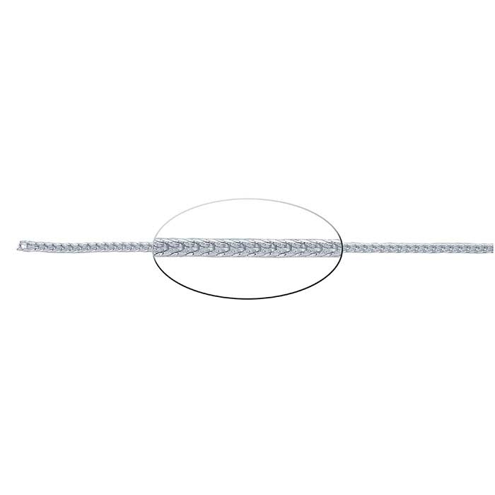Foxtail chain is made with two rows of oval links arranged at 45° to one another and connected by small flat links.