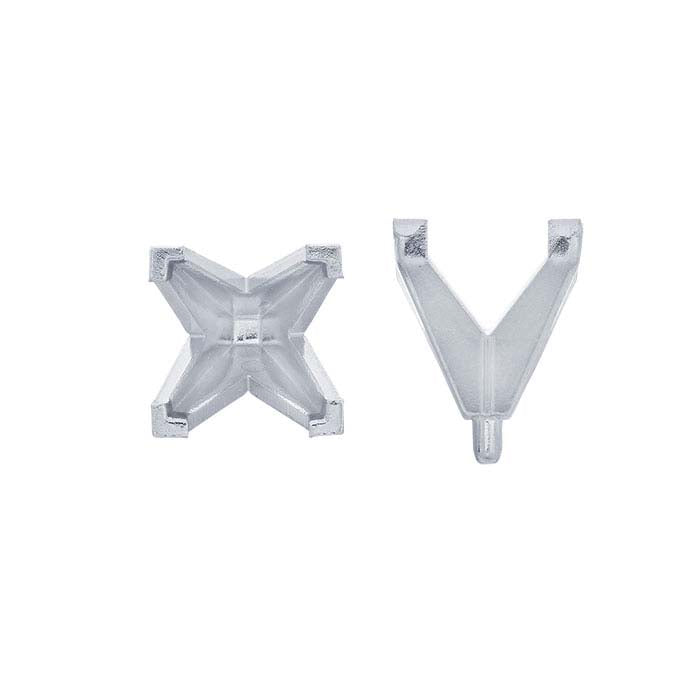 This 14-karat white gold setting holds one 9.5mm princess-cut faceted gemstone. A classic choice, the 4-prong setting supports the gemstone on four sides. Use peg settings in ring shanks with a hole; they allow you to be more accurate, clean and quick when positioning the setting on the shank. If desired, clip the peg to use the setting with other ring shanks or components.