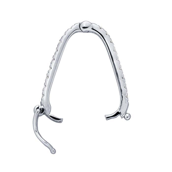 This 14-karat white gold necklace enhancer is set with twenty-four 0.005-ct. round white diamonds (I1 clarity/G, H color; 0.12CTTW). Enhancers conceal the hinge for a seamless look and are ideal for attaching pendants, charms, drops or dangles to necklaces or bead strand designs without permanently altering the original piece. An enhancer is easy to use and instantly interchangeable; offer your customers a selection of finished, coordinated enhancers as an add-on sale to a finished necklace. Hinged enhancers open to make it simple to position the pendant, then close the enhancer over the strand or cord.