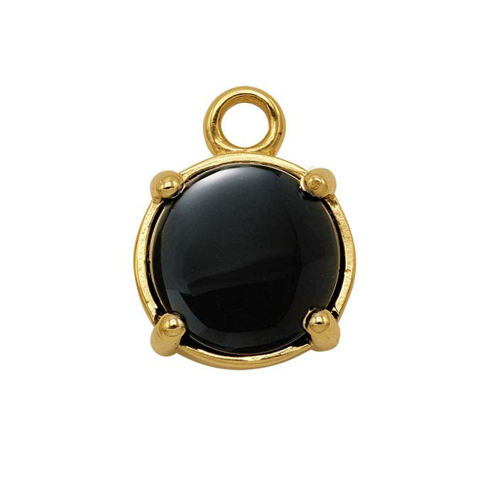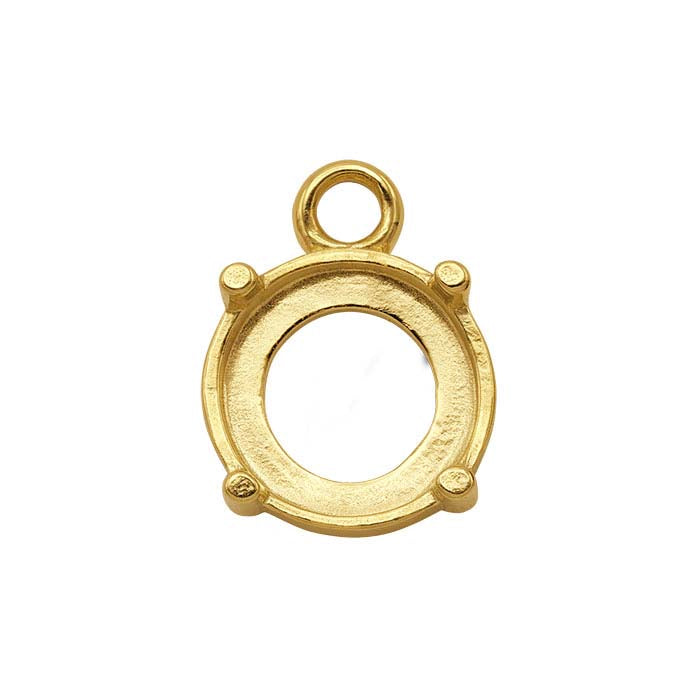 This versatile 14-karat yellow gold component offers a 4-prong mounting that accommodates a round cabochon. To create a pendant, attach a bail to the fixed ring on the mounting; for a drop component, add a jump ring to allow the component to be attached to a necklace or other jewelry design. To create a simple earring drop, simply add the set component to the ring or loop of a post or wire earring finding.