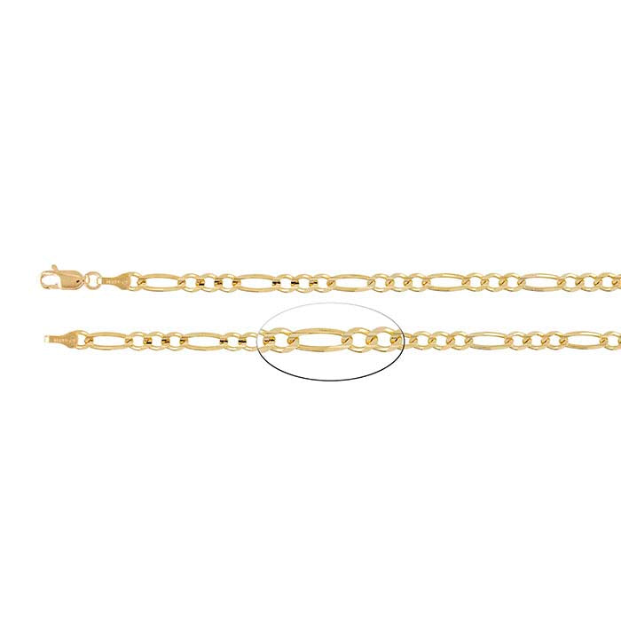14K Yellow Gold 3.8mm Diamond-Cut Figaro Chain