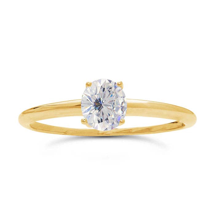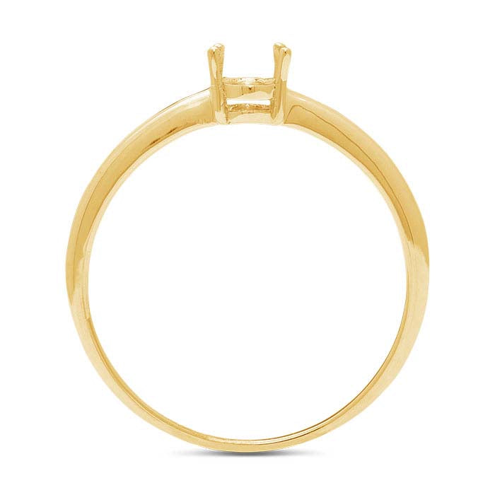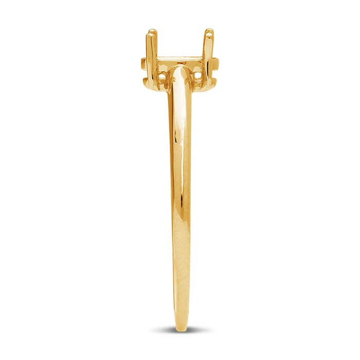 This 14-karat yellow gold ring features a 4-prong mounting that accommodates one 6 x 4mm oval faceted gemstone. The prongs are pre-notched, helping ensure a professional, time-saving stone-setting. The straight shank and simple styling make the ring an attractive stand-alone accessory and it looks great when stacked with other rings to create a more complex look.