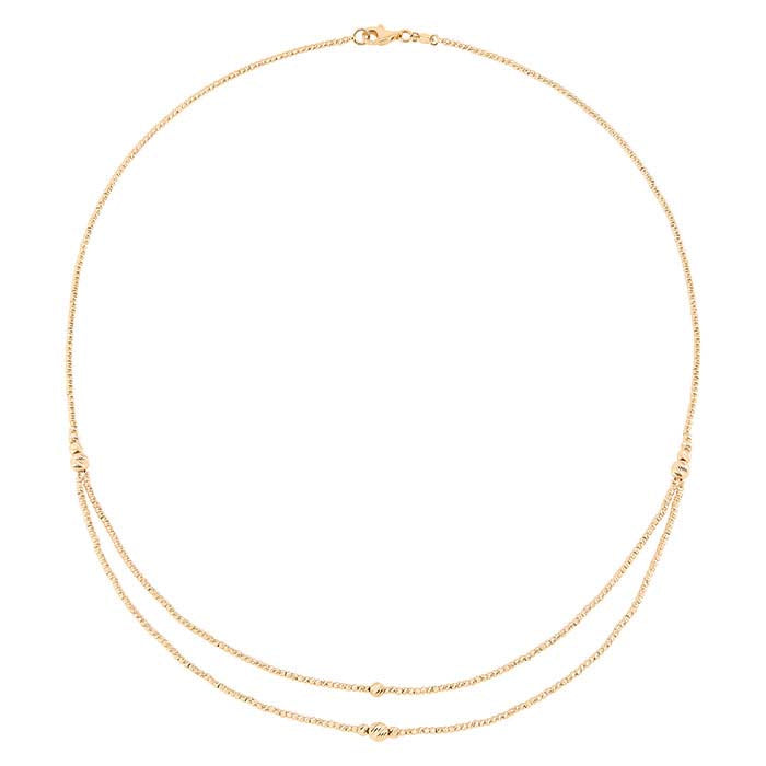 14K Yellow Gold Double Layer Beaded Chain Necklace