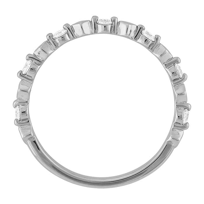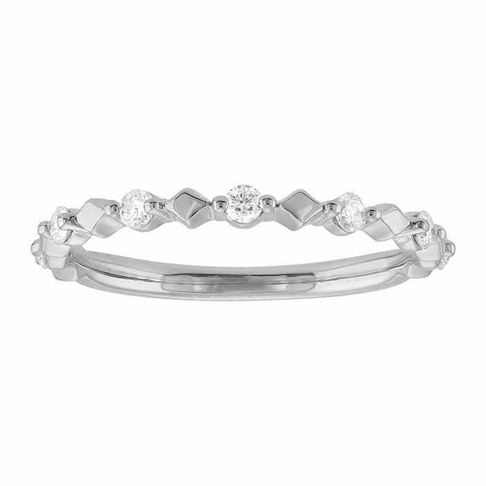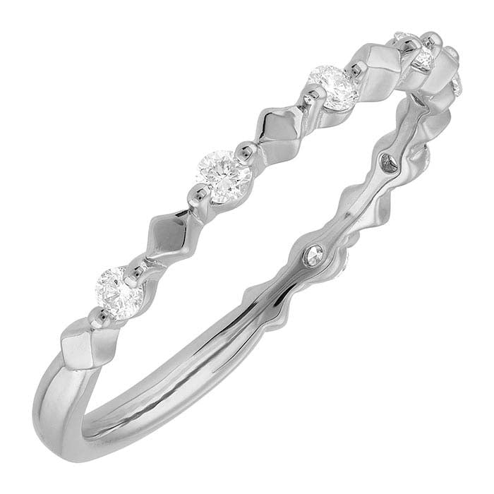 With a geometric design, this sterling silver ring offers a versatile design. It is set with several round white diamonds (I3 clarity/H–I color; 1/5CTTW). The ring looks great as a stand-alone accessory or stacked in combination with other rings. It has a ".925" sterling silver stamp as a symbol of guaranteed product quality.