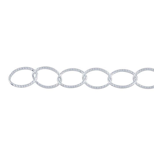 Sterling Silver 6.4mm Patterned Flat Oval Cable Chain, By the Foot