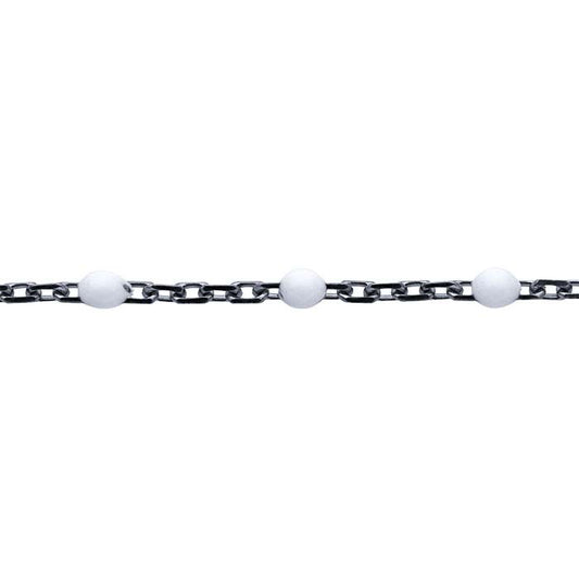 Sterling Silver 1.2mm Cable Chain with 2mm White Beads