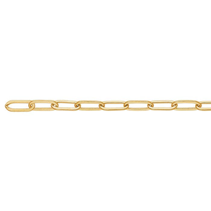 The long, flat links on this 14/20 yellow gold-filled chain catch the light and a have sleek look. Offer the chain as is, or use it as a foundation for your custom designs.The most common chain style, cable chains are formed by simply connecting single links perpendicularly end to end. Links may be round, oval or other shapes.This chain is sold by the foot, so it's easy to be sure you have as much chain as you need.