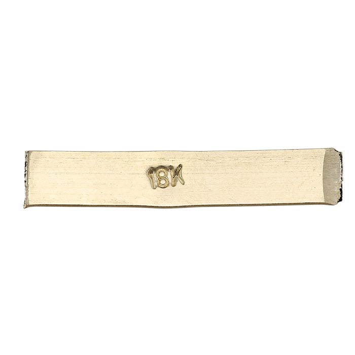 Easily and clearly quality-mark your 18-karat gold jewelry pieces with this domed 18K stamp. This stamp fits into your marking pliers (available separately) and marks your jewelry pieces with a simple squeeze. It is ideal for marking curved surfaces, such as the inside of a ring or cuff bracelet. The stamp is precision-engraved from 5/16" tool steel oil-hardened to 58/62 HRC, delivering crisp, detailed surfaces and a long service life.